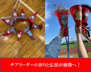 福祉学科有志で構成されたチアリーダーも自前の応援グッズで応援!そのかいあって