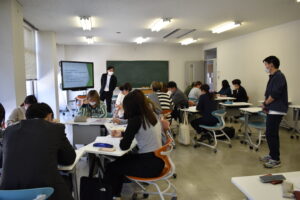 今年の夏に社会福祉士の実習に行く福祉学科3年生が、障がい者への支援を長年行っている社会福祉法人一れつ会の中山氏に講義をしていただきました。講義では、障がい者の分野でどのような支援が行われているのか、職員の方々が意識しておられること、地域と福祉施設の連携の実際について、お話をうかがいました。