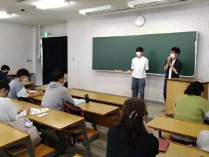 6月1日(木)に、1年生全員が受講する基礎演習Ⅰにて上級生との交流会を開催しました!福祉学科では高度ソーシャルワーク履修モデル、介護ソーシャルワーク履修モデル、教育ソーシャルワーク履修モデルの3つの履修モデルがあります。今回は、高度ソーシャルワーク履修モデルの4年生2名から、大学生活の過ごし方や大学の授業・実習の心構えなど学生ならではの視点で話していただきました。