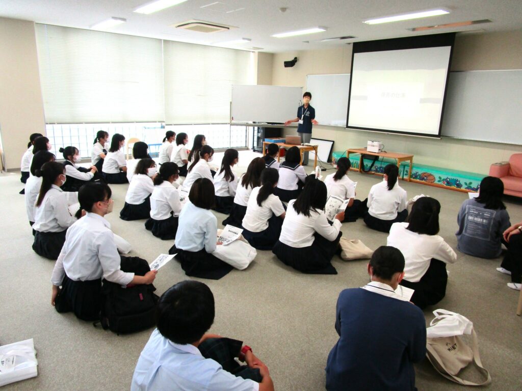 上↑の写真は、昨年度のオープンキャンパスの様子です。こんな風に、先輩たちと仲良くなって、たくさん色々なことを聞いたりお話ししたりできますよ。また、模擬授業もあるので、一足早く大学生になった自分自身を想像することができると思います。