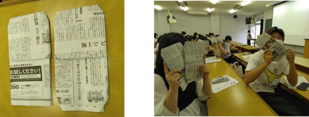 今回は、災害時に避難場所で活用できる「新聞紙でつくるスリッパ」を作成しました。