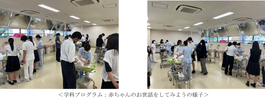 今回は、ミニ授業「赤ちゃんを知ろう」・学科プログラム「赤ちゃんのお世話をしてみよう」・看護学棟探検ツアーを行いました。学科プログラムでは、参加者の高校生と保証人の方、学生スタッフもたくさんの笑顔が見られました。