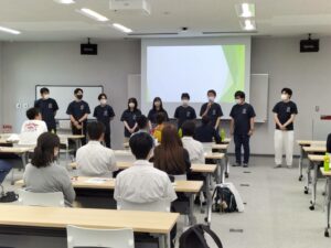 模擬講義の後、在学生のキャンパスライフの紹介をしました。