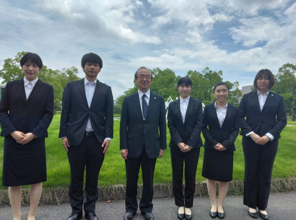 冨士学長と認定式を終えた学生たち