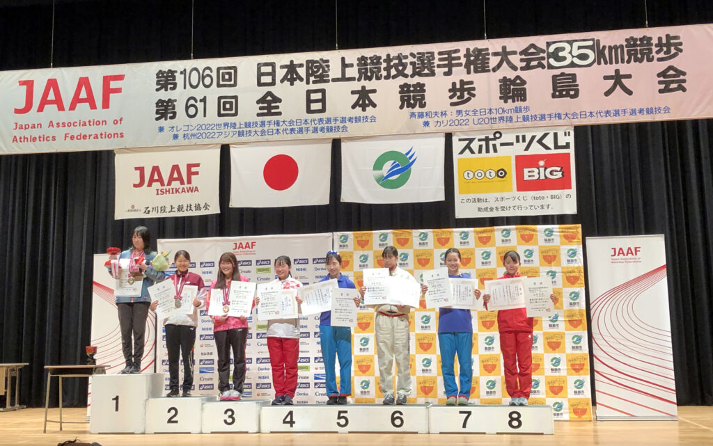 三好さんは1年生の秋から競歩種目に取り組み始め、半年後の2年生で中国四国学生対校選手権(中四国インカレ)を制し、今年度まで3連覇しています。昨年4月の全日本競歩で8位入賞、今年3月の学生選手権でも8位入賞を果たしています。また、5000m・10000m・20Kmのすべての競歩種目で日本ランキング20位以内とトップアスリートに成長してくれました。