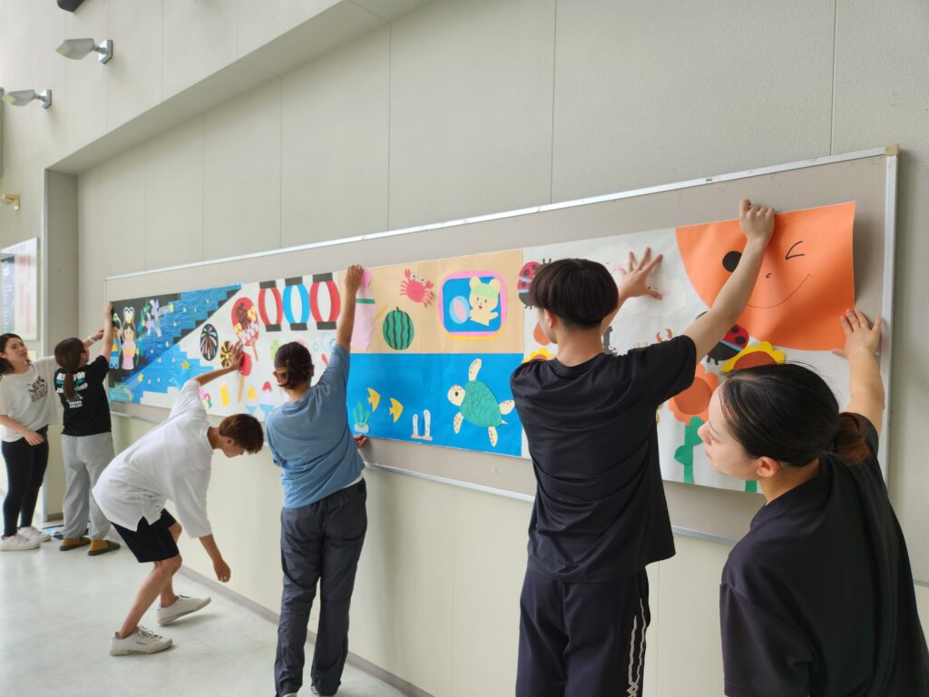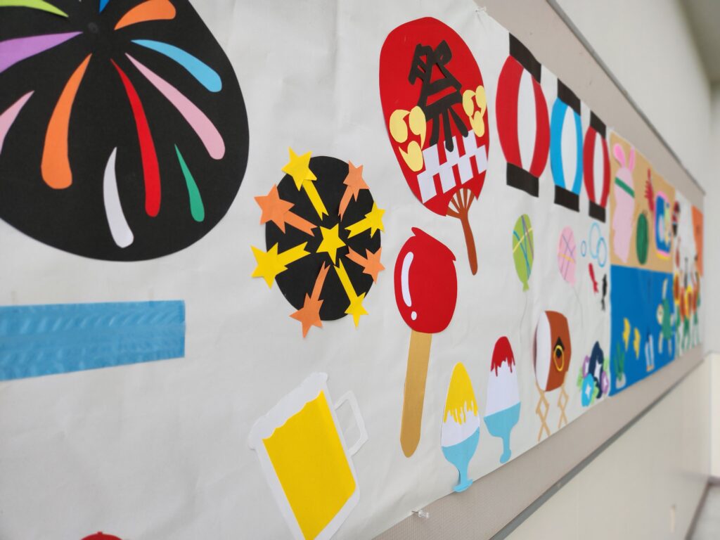 学生リーダーたちによる壁面制作が夏バージョンへと変わりました。