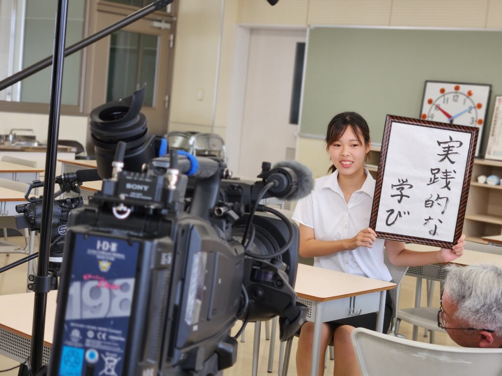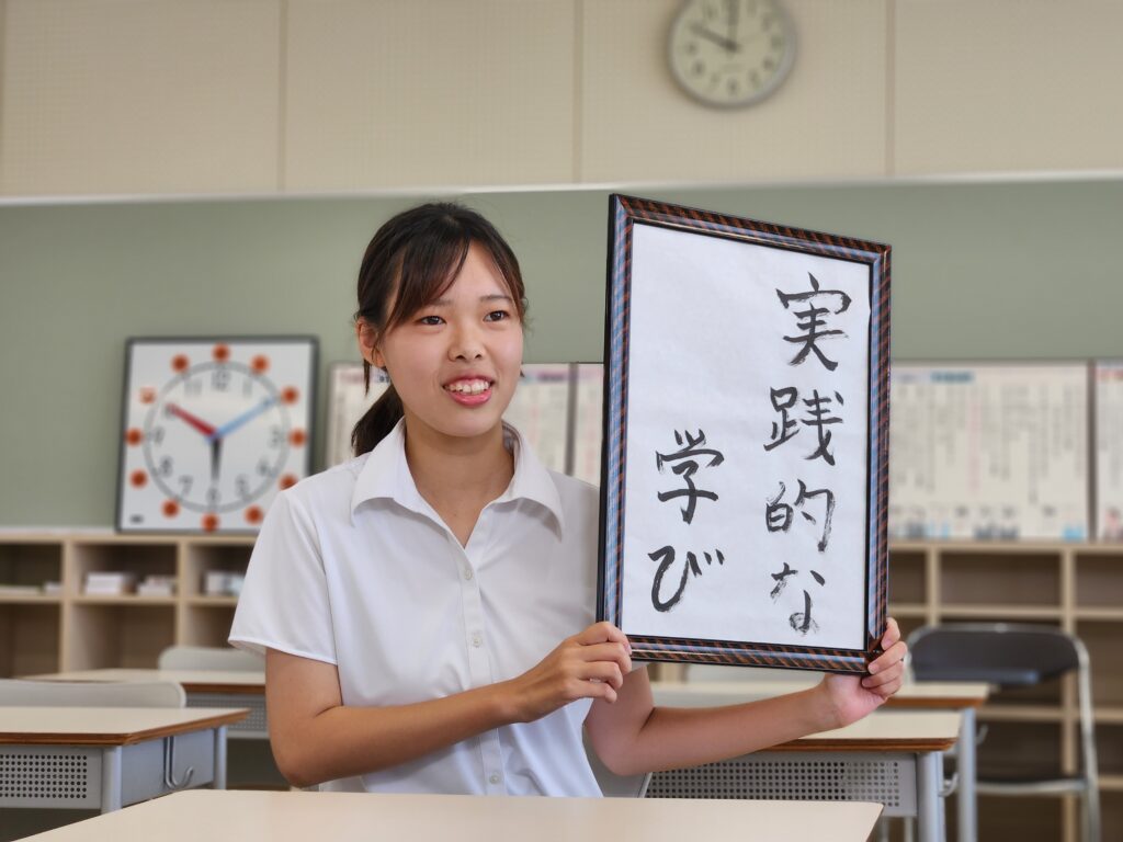 小学校教諭を目指す細川さんは、本学の特徴として「実践的な学び」を挙げてくれました。