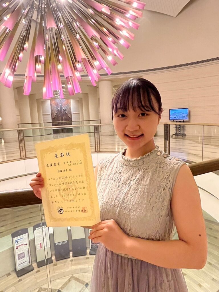 こども学科4年生の佐藤英奈さんが、第17回ベーテン音楽コンクール中国地区予選にて、最優秀賞を受賞されました。おめでとうございます!