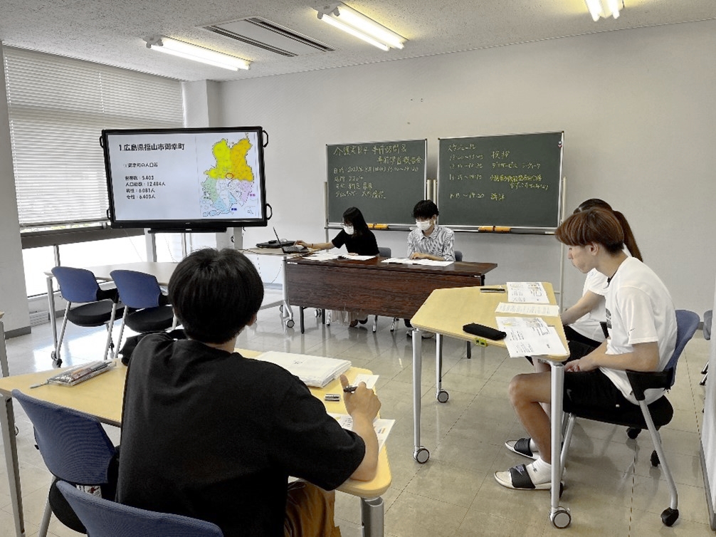 事前訪問報告会でデイサービス ラ・ヴィータの実習生が地域学習を報告