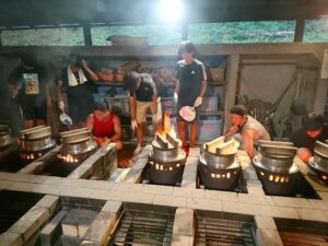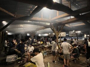 BBQでは、まきでの火起こしや火力の調整に悪戦苦闘しながらも、釜を使っておいしいお米を炊き上げました。