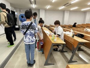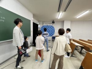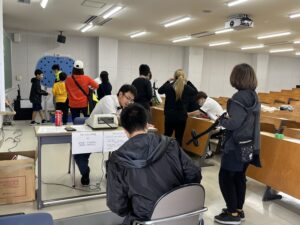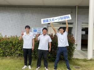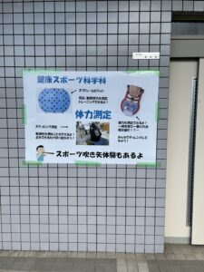 健康スポーツ科学科では、『体力測定』のテーマで、握力、ステッピングテスト、ビジョントレーニングの測定と、スポーツ吹き矢、健康指導を行いました。