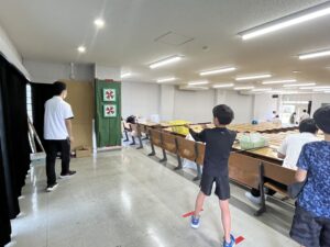スポーツ吹き矢には大人の方も魅了された方が多く、特に小学生は、何度も何度もチャレンジにやってきて、技を磨いていました。