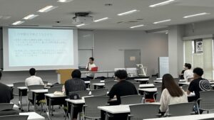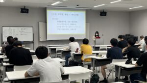 夏休み期間中に参加したインターンシップについて、体験したこと、実習を通じて学んだこと、今後に活かしていきたいことなどを、3年生約40名が報告しました。