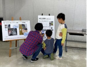 さらに、ARの体験会では,スマホでQRコードを読み込むと,植物がARで表示されたり,本学の学生が中学・高校生向けに制作途中のAR教材を体験したりしていただきました。