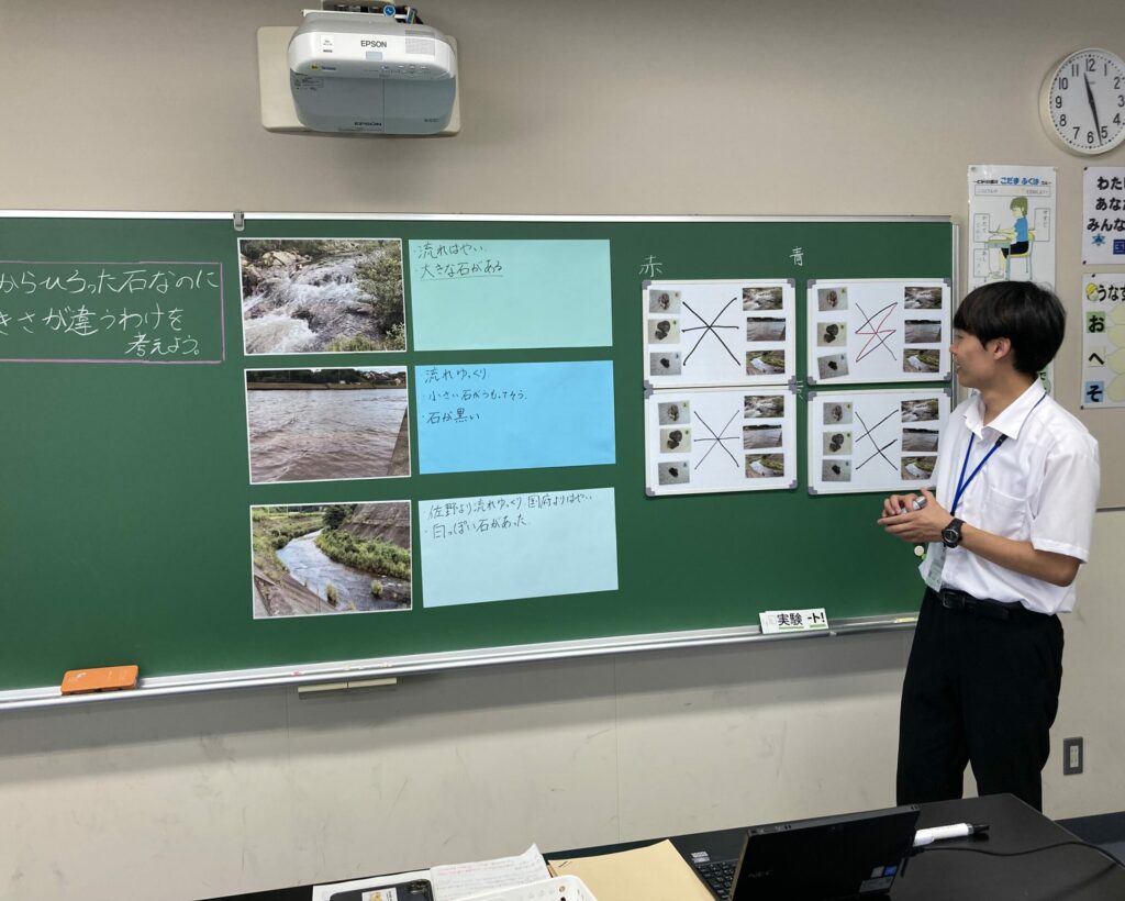 実習中に、大学で学んだ教科ごとの教え方や授業の行い方などを試すことも出来ましたが思い通りにいかないことや想像していなかった発言が出ることもありました。模擬授業と実際の授業とでは、やはり大きく違いがあるなと実感しました。実際に授業を担当する度に自分の課題を見つけることができ、それを次の授業の時に改善することができるよう心掛けました。授業をするごとにたくさんの先生方からアドバイスを頂ききました。今は頂いたアドバイスを参考にしながら、学問にはげんでいます。