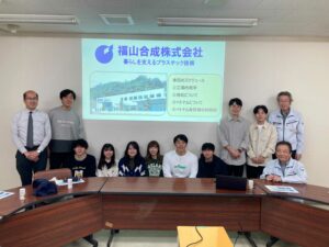 そのため事前に、東南アジアの地理、近現代史、経済事情およびわが国企業の東南アジア進出事例について学修しています。 事前学修の一環として、ベトナムに進出している地元福山の企業、福山合成株式会社本社を訪問しました。