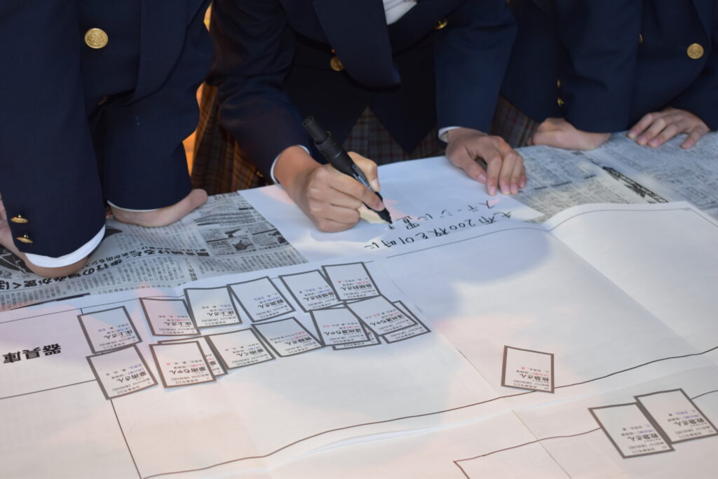 東朋中学1年生は、全部で4クラス。午前2クラス、午後2クラスにわかれ、全員が避難所運営ゲーム(HUG)に挑戦しました。
