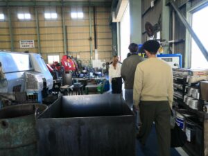 2年生を対象とした「中小企業研究」は、地元企業との連携によるアクティブラーニング型の授業です。この授業の一環として11月21日、日鐵鋼業株式会社を訪問しました。本学の卒業生はじめ、社員の方から、鉄板の切断、溶接、穴開け、レーザー加工といった、先端機器の操作について、詳細な説明を受けました。また、デジタル化に力を入れている同社における、さまざまな情報を一括してシステムで管理することで、ペーパーレス化と効率化を実現していることを学びました。そして、訪問の終盤には、能登社長をはじめ専務や工場長の皆様には、同社の技術と製品の詳細な説明のほか、採用選考の基準や働き方改革など関する学生からの質問に真摯にお答えいただきました。学生たちにとって、この貴重な経験は、地元企業の強みとそこで働く意義を学ぶ素晴らしい機会となったように思います。最後に、お忙しい中私たちを迎え入れてくださった社員の皆様、このように特別な機会を設定していただいた広島県中小企業家同友会福山支部の方々に、心より感謝申し上げます。