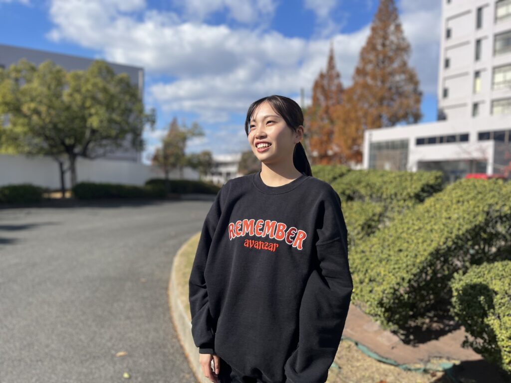 (広島県立三次高等学校出身 中山 莉緒さん:福山平成大学2号館噴水前にて)