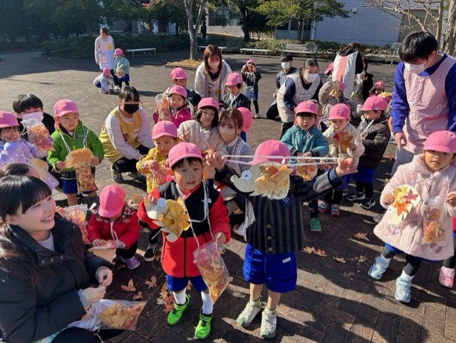 【こども学科】落ち葉をひろって遊ぼう!③ 学校法人出原学園すばる幼稚園さんとの交流会豊かな自然環境を生かしたこども学科定例行事