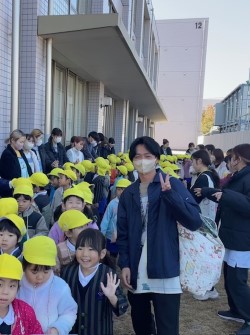 昨年、学校法人出原学園すばる幼稚園から5歳児約50名3歳児約50名の子どもたちが、6名の先生方と一緒に、こども学科に「落ち葉を拾って遊ぼう」へ遊びに来てくれました。