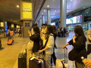 ホーチミン・タンソンニャット空港に到着し、空港の建物の外へ出たとたん、学生の皆さんは南国の雰囲気に圧倒されました。