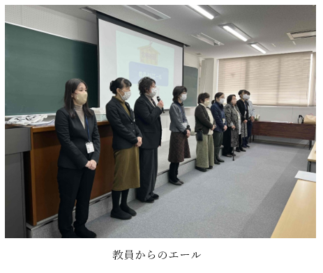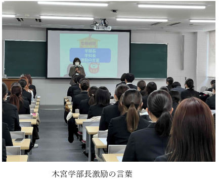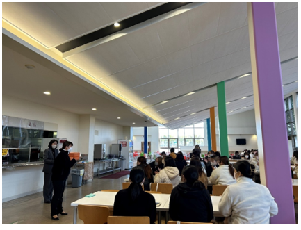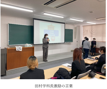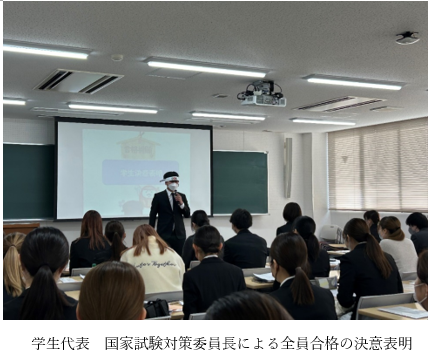 4年生にとっては、国家試験に向けてのラストスパートです。1月26日(金)に壮行会を開催しました。クラス委員長による合掌の合図で、ゲン担ぎのカツサンドをサクラダイニング〔学生食堂〕で食べました。