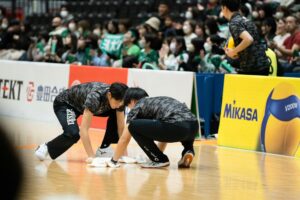 JTサンダース広島vsヴォレアス北海道の試合に男子バレーボール部がコートオフィシャルとして参加しました