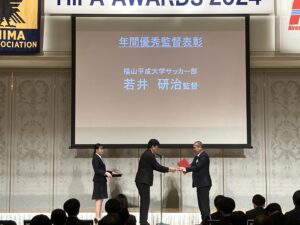 (健スポ)HiFA AWARDS 2024でサッカー部の若井研治監督と3年勇次大希君が表彰されました