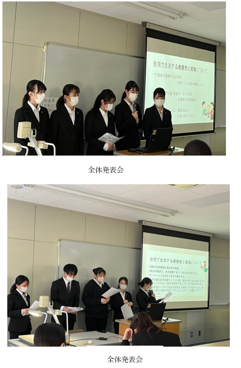 2月8日・9日の2日間で、外部講師による「地域包括支援センターについて」の講義と在宅看護学実習の学び(まとめ)の「全体発表会」が開催されました。