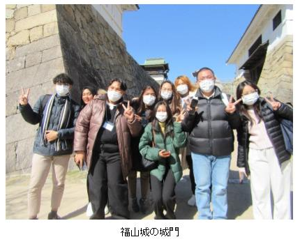午後からは、木宮高代学部長・岡和子教授も同行し、福山城と福山歴史博物館を見学し、福山市の歴史を学習しました。