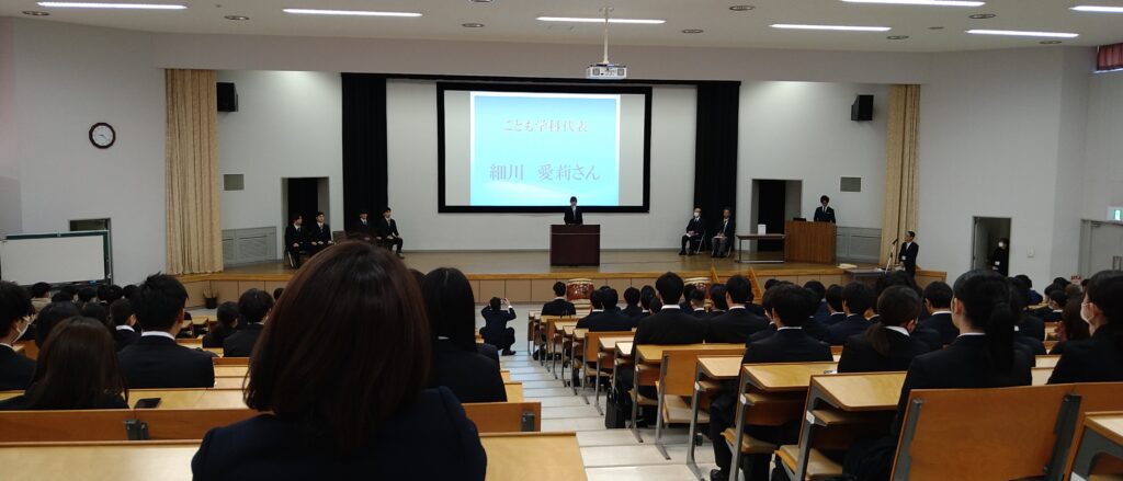 こども学科からは今回紅一点の細川さんが、就職へ向けての力強い決意を表明。