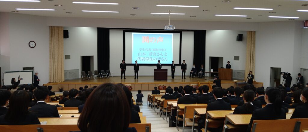 皆さん、こんにちは。本日は福山平成大学で就活出陣式がおこなわれました。