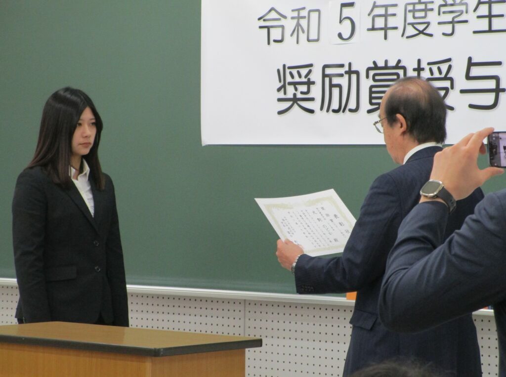 犬飼さんもその一人で、この度、令和5年度学生表彰・奨励賞が授与されました。