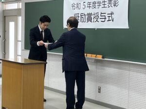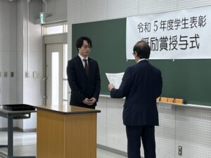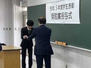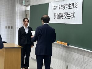 令和5年度の奨励賞授与式(スポーツ部門)で学生が表彰されました