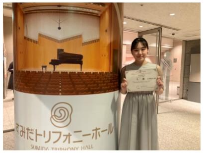 3月4日に東京で開催された全国大会では、看護の実習が終わった直後で十分な練習ができなかったにもかかわらず、楽しく演奏することができました。結果は入選でしたが、今後も看護の勉強とピアノの練習の両方を怠ることなく頑張ることでしょう。