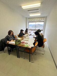 2、3年生の学生たちは、春休み中も週2回程度集まって、自宅で解いた過去問等を解説しあうなどして深め合っています。採用試験対策としてだけでなく、養護教諭として働いたときにもためになる勉強会です。