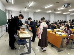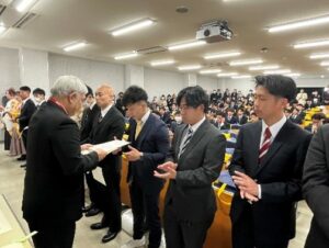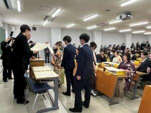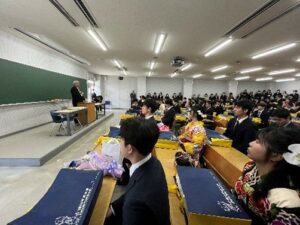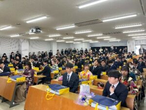 3月21日、令和5年度 学位記授与式の修了後、学科に分かれて学位記の配付と卒論の最優秀賞の表彰を行いました。保証人の皆様もたくさんご参加くださいました。