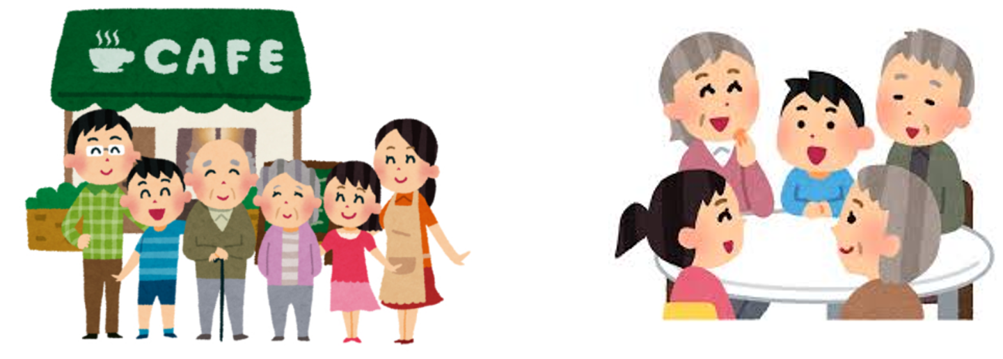 「認知症カフェ」とは、認知症の当事者やその家族、知人、医療やケアの専門職、そして認知症について気になる人などが気軽に集まり、なごやかな雰囲気のもとで交流を楽しむ場所です。人が足を」運びやすい場所に開設され、必要に応じて相談もおこないます。