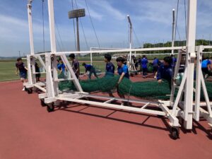 前日準備では、人工芝を敷いたり,ゲージ移動をしたり、大掛かりの準備をしました。