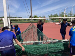 サッカー部員が5月26日(日)に開催された,天皇杯JFA第104回全日本サッカー選手権大会 1回戦の運営に参加しました。当日は,中国リーグ第5節のホーム運営・試合と重なっていることもあり、5月25日(土)の前日準備から運営に携わりました。