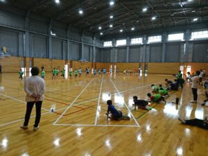 今回の測定では,40m走,立ち幅とび,長座体前屈,上体起こし,ソフトボール投げ,20mシャトルランが実施されました。各測定とも,参加したジュニア選手の皆さんは全力で取り組んでいました.ソフトボール投げでは,体育館の壁に勢いよく当たる遠投や,100回を超える20mシャトルランなども見られました.