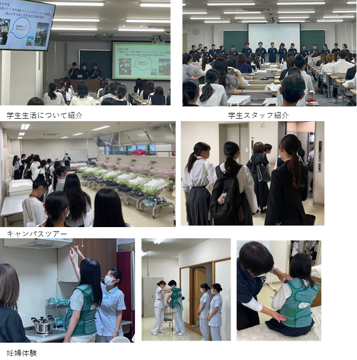 今回は、学科紹介、看護学部棟キャンパスツアー、学科イベント「妊婦さん体験」を行いました。
