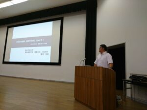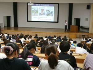 授業の最後に藤井准教授から学生たちへ、「最近はスマホを長時間、悪い姿勢で使用することが原因で姿勢が崩れている人が多い。普段の生活から正しい姿勢を心がけてみてほしい。正しい姿勢が競技力や健康へとつながる」という話がされました。