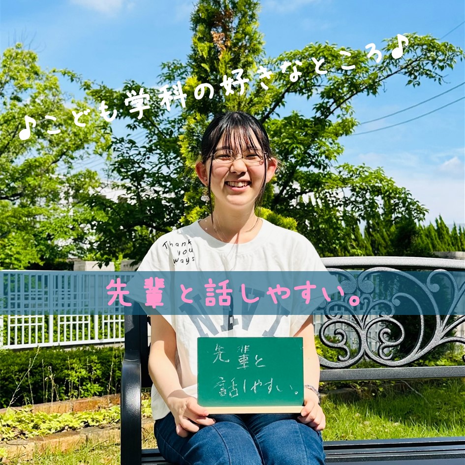 黒板には、♪こども学科の好きなところ♪書いてもらいました。先輩たちの素敵な笑顔で大学生活楽しんでいることが分かると思います。こんな素敵な先輩たくさんいたら、雨にも負けず大学で一緒に学んでいけますね!