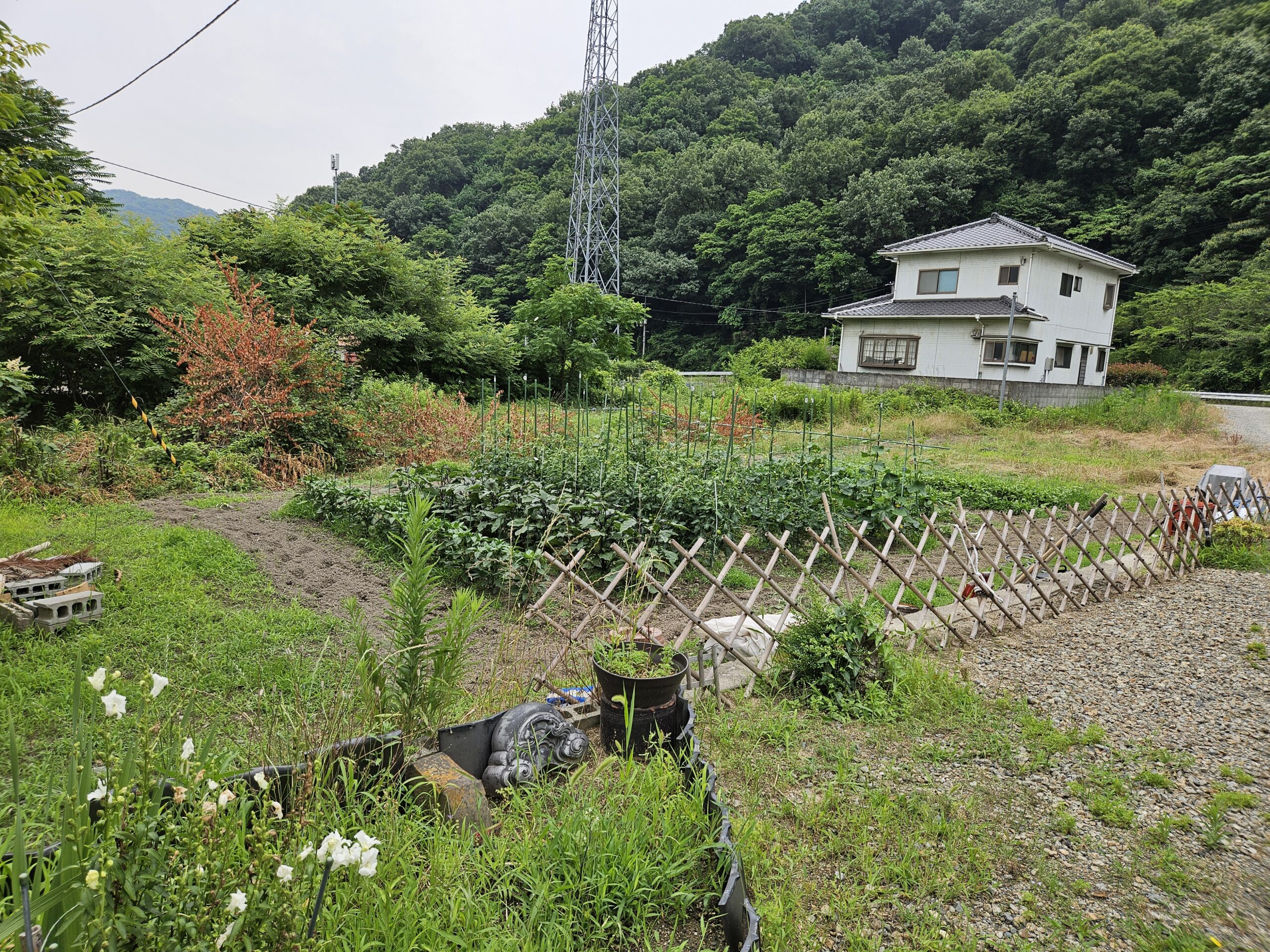 施設の前には畑が広がっています。育て、収穫してみなさんで食べるとか。我々もキュウリをいただきました。
