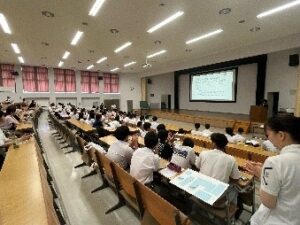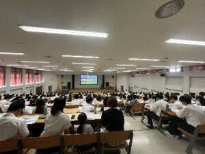 本日のオープンキャンパスですが猛暑の中、健康スポーツ科学科には大変多くの皆さまをお迎えしました。オープニング行事で入試や大学の特徴、本日の流れなどの全体説明が行なわれた後、各学ごとにイベントが行われました。