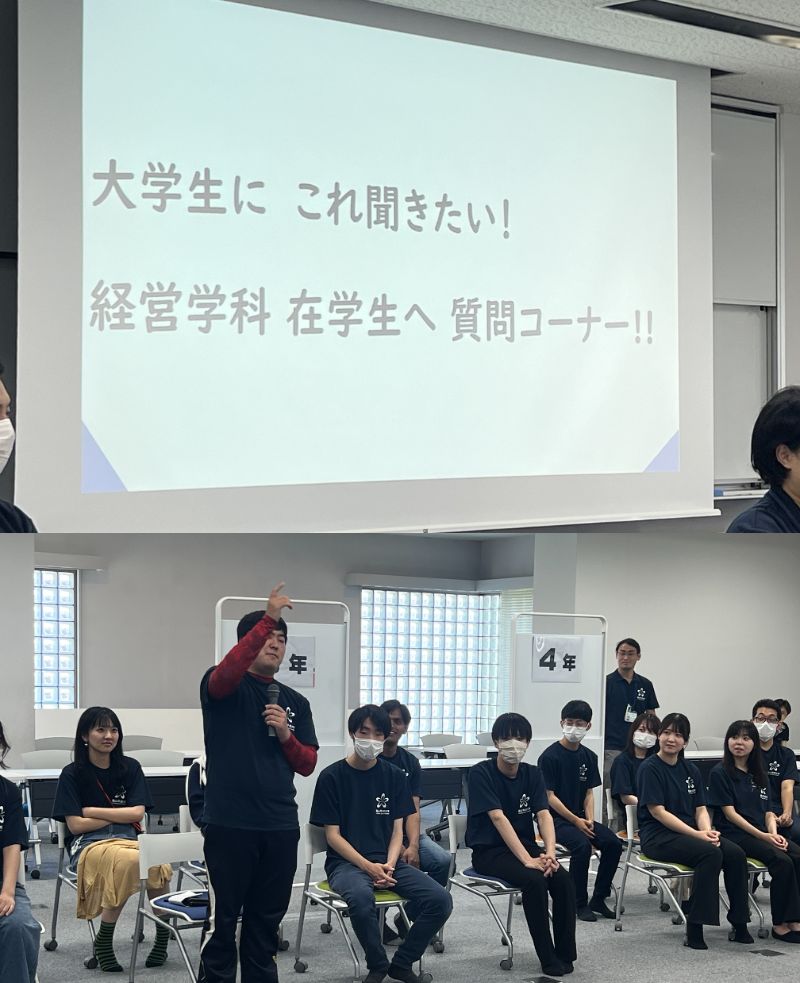 午前の学科イベント①は経営学科教員が主体となってプログラムを実行しているのですが、午後の学科イベント②は在学生主体のプログラムです。