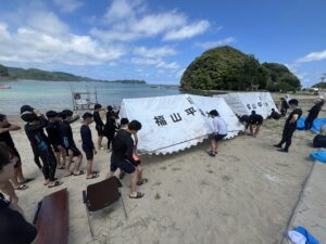 10時半ごろに現地に到着し、 浜にテントをたてて準備完了です。