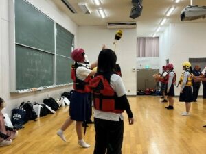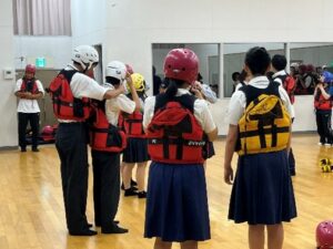 ライフジャケットの正しい着用を学んだり、実際にロープを投げてレスキューを実体験したりしました。